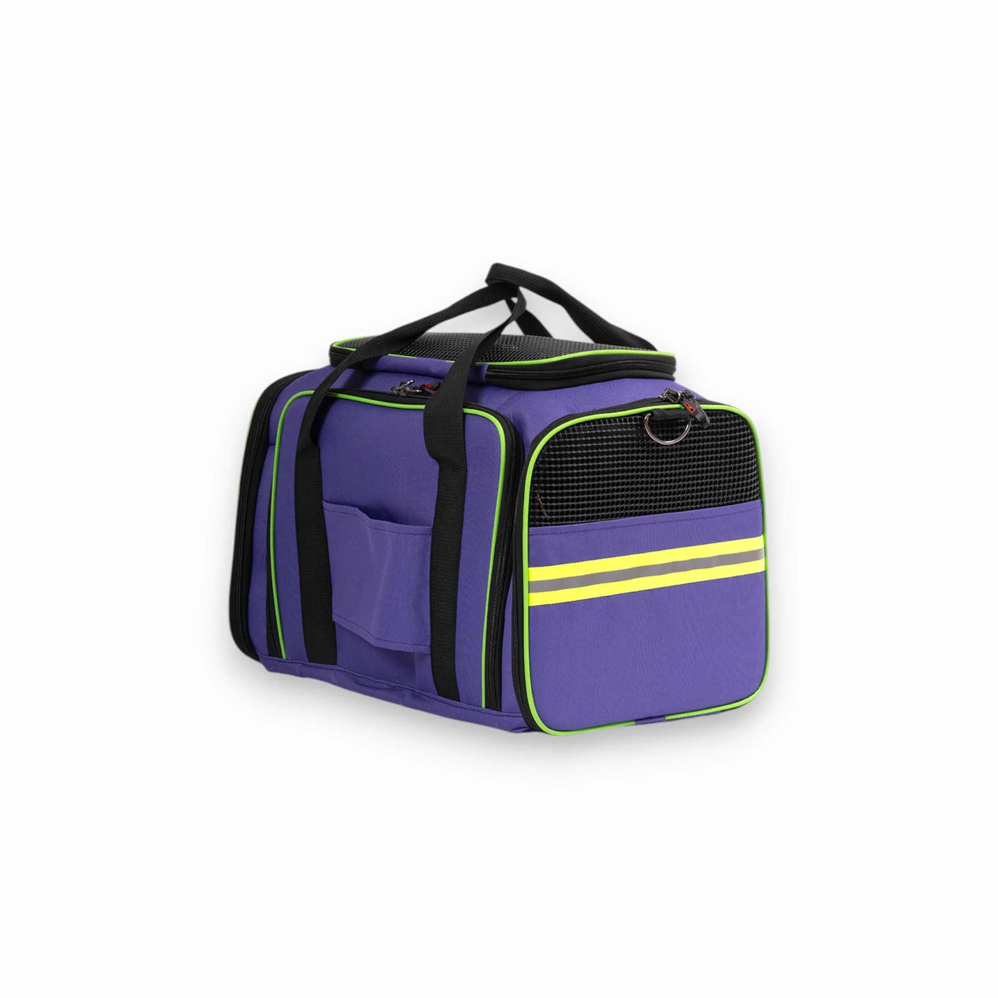 Kare model evcil hayvan taşıma çantası, dayanıklı plastik fileli yüzeyiyle uzun ömürlü kullanım sağlar. Sert ve kaliteli plastik yapısı, darbelere karşı yüksek dayanıklılık gösterirken, ergonomik tasarımıyla estetik bir görünüm sunar. Hava akışını optimize eden file yapısı sayesinde evcil dostunuza konforlu bir seyahat deneyimi sunar.